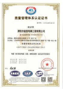 溧陽市富奎電梯工程有限公司 溧陽市富奎電梯工程有限公司是于二OO八年一月九日在原前身溧陽市電梯工程公司基礎(chǔ)上成立的,是專業(yè)從事電梯銷售安裝維修、保養(yǎng)的企業(yè)。是國家質(zhì)監(jiān)總局頒發(fā)的特種設(shè)備安裝、改造、維修A級安裝許可證單位。公司組織機(jī)構(gòu)實行總經(jīng)理負(fù)責(zé)制,公司下設(shè)管理部、銷售部、安裝維修部、質(zhì)安部、財務(wù)部,公司另外設(shè)十二個分公司:四川分公司、江蘇分公司、上海分公司、浙江分公司、湖南分公司、遼寧分公司、山東分...